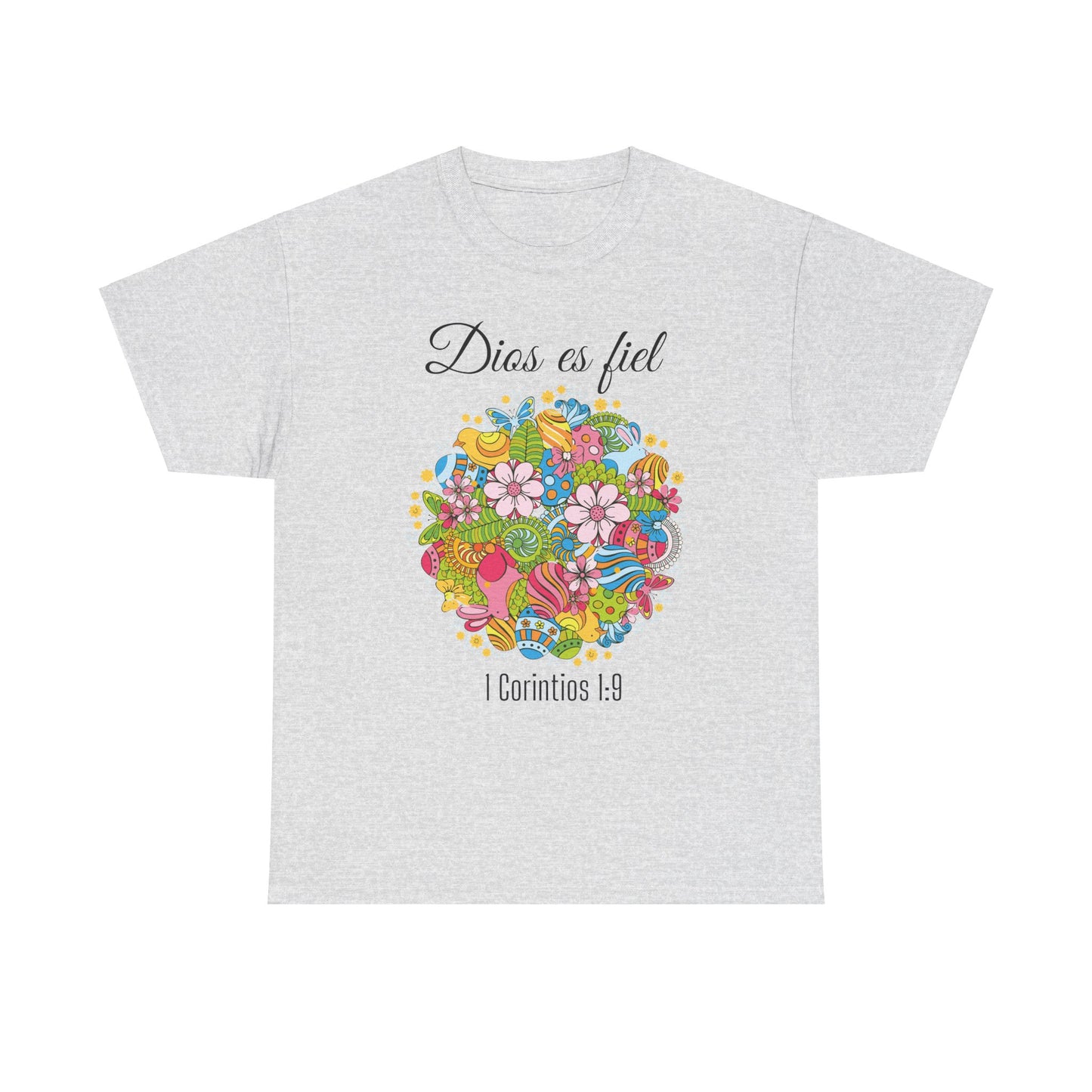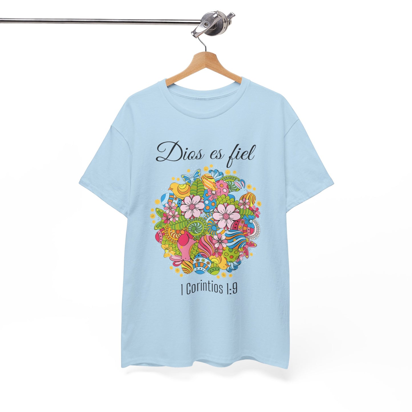 Camiseta playera con mensaje bíblico cristiano, unisex 100% algodón grueso "Dios es fiel". Diseño original floral. Amplia variedad